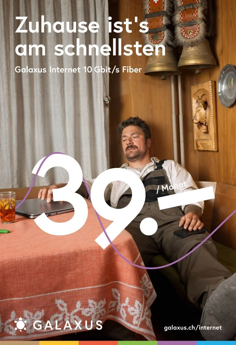Für Galaxus Internet riefen wir per Plakat höchst entschleunigt zum zuhause bleiben auf. Denn wer dort schnelles Fiber hat, verpasst draussen nichts – ausser langsameres Internet. In den Filmen dazu passierte ebenso nichts.